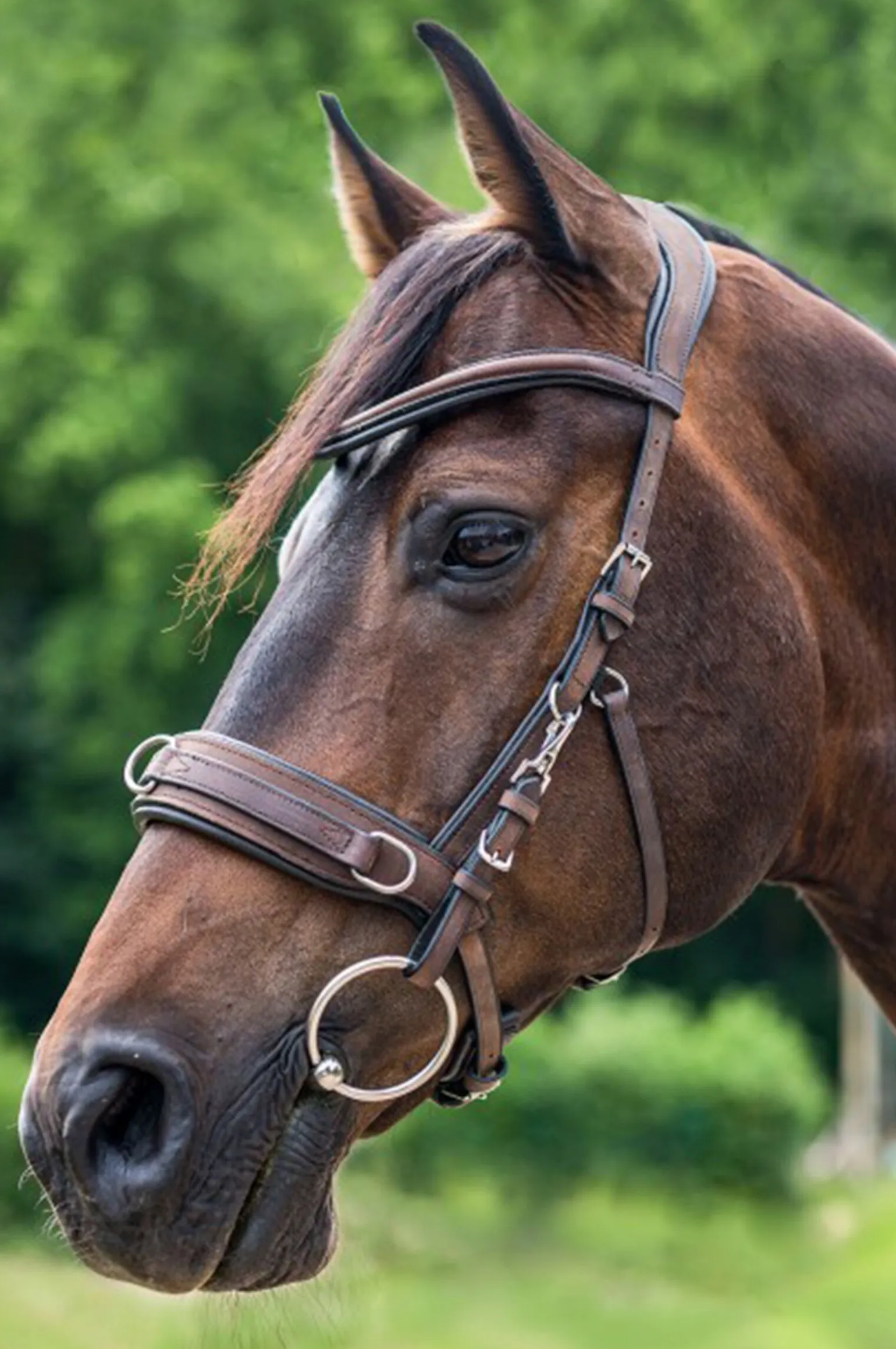 The anatomical cut provides much greater freedom for the ears and also the cheekbone. Very softly padded. In high quality leather, with stainless steel fittings. Can be used with, and without, a bit.