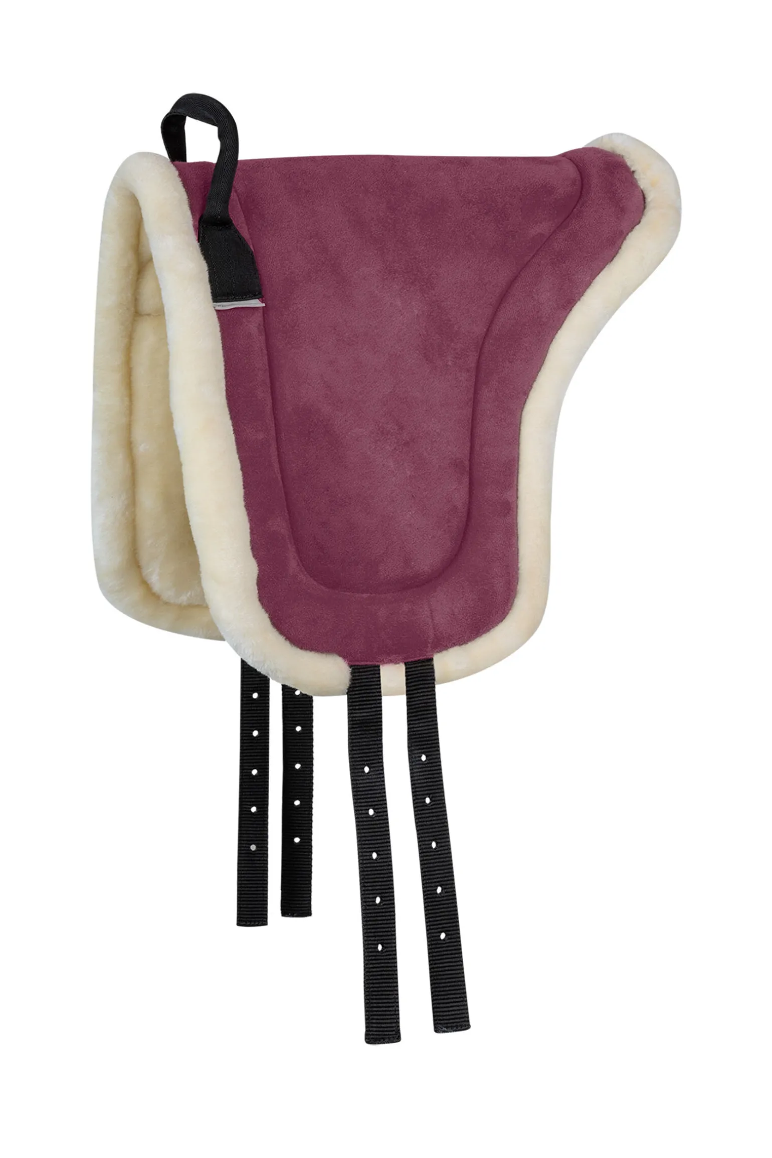 Mykt rideunderlag med underside av kunstpels for høy komfort for både hest og rytter. En håndtak foran samt et grep i imitert semsket skinn sikrer ekstra godt grep under ridning.
