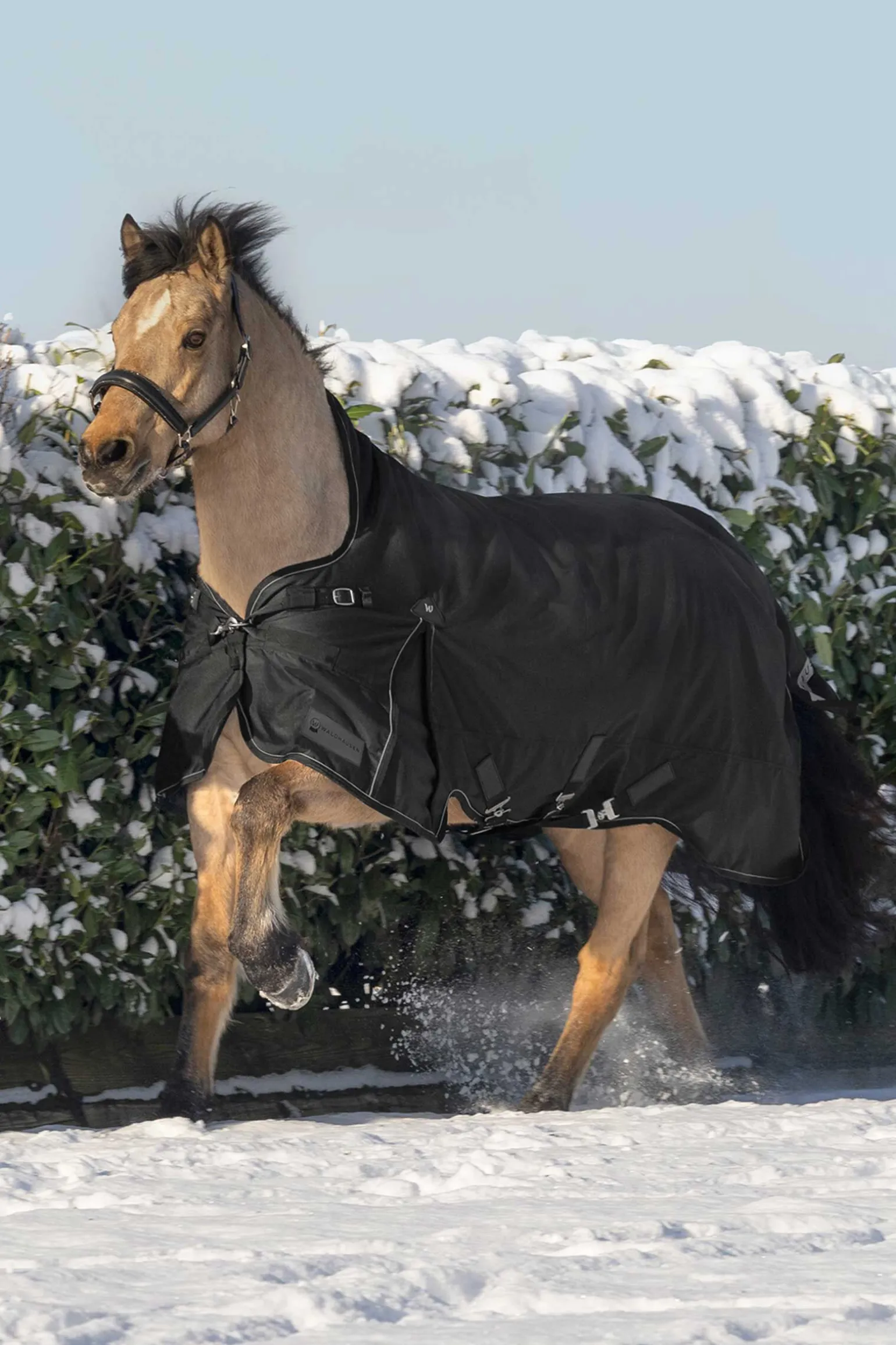 Waldhausen Scandic utedekken er den ultimate kombinasjonen av komfort, funksjonalitet, materialer av høy kvalitet og innovative funksjoner. Det antibakterielle innerforet sikrer maksimal komfort. Den nye V-front lukkingen og de store gåfoldene gir en ideell passform og optimal bevegelsesfrihet. De reflekterende kantene øker synligheten og sikkerheten til hesten din i svakt lys. Det ytre stoffet i 1200 denier garanterer et robust og slitesterkt dekken som tåler utfordringene ved utendørs bruk.Stay Clean Inlay: Aldri mer hestehår på dekken som bare er prøvd én gang. Stay Clean Inlay fra Waldhausen tilbyr en praktisk og innovativ løsning for å prøve dekken på hester hygienisk og enkelt, uten at de blir skitne eller fulle av hår. Innlegget er direkte integrert i de nye Waldhausen utedekkene og festet på innsiden, og forhindrer direkte kontakt mellom hestens rygg og dekkenet. Resultatet: Dekkenet forblir rent, selv om det bare er brukt én gang for tilpasning. Det er viktig å merke seg at Stay Clean Inlay er designet for kortvarig bruk under tilpasning og ikke for permanent bruk. Det kan enkelt fjernes ved å trekke det forsiktig av.